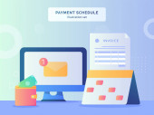 Ilustracja przypomnienie płatności ustawić datę znacznika na tle kalendarza faktury papierowy dzwonek e-mail powiadomienie z płaskim stylu wektor projektu