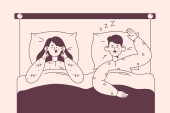 Koncepcja bezsenności. Nastolatek ma problemy ze snem w nocy. Kobieta leży w łóżku bezsenna i myśli o swoich problemach. Dziewczyna nie może spać z powodu stresu. Wektor płaska ilustracja