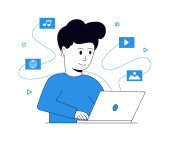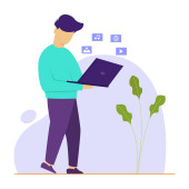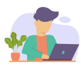 Zdjęcie "Biznesmen pracujący w miejscu pracy. Młody człowiek pracuje przy komputerze. ilustracja wektora" może być wykorzystywane do celów osobistych i komercyjnych zgodnie z warunkami zakupionej licencji Royalty-free. Obraz jest dostępny do pobrania w jakości wysokiej rozdzielczości do 5760x3840.