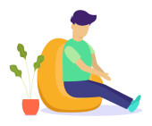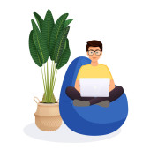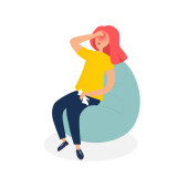 Młody człowiek siedzi w fasolowej torbie. Ilustracja wektora