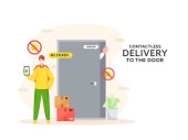 Kurier Boy Informuje Cię o zamówieniu Dostawa przez telefon do klienta w drzwiach do dostawy bezkontaktowej podczas koronawirusu.