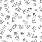 Dzieci pielęgnacji jamy ustnej bezszwowy wzór wektora. Symbole higieny jamy ustnej klip rysunek sztuki.Dentysta Medycyna ręcznie rysowane ikona. Teksturowana ilustracja wykonana w zabawnym stylu płaskie doodle.
