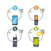 zestaw ikon z nowoczesnymi smartfonami na białym tle