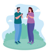Zdjęcie "para korzystająca ze smartfona outdoor, mediów społecznościowych i technologii komunikacyjnych" może być wykorzystywane do celów osobistych i komercyjnych zgodnie z warunkami zakupionej licencji Royalty-free. Obraz jest dostępny do pobrania w jakości wysokiej rozdzielczości do 5760x3840.