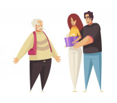 babcia dziadek córka i syn na ławce wektor projekt
