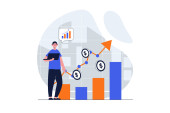 Zdjęcie "Koncepcja ilustracji wektora finansowego z postaciami. Nowoczesny płaski styl strony lądowania, aplikacja mobilna, plakat, ulotka, szablon, baner internetowy, infografika, zdjęcia bohaterów." może być wykorzystywane do celów osobistych i komercyjnych zgodnie z warunkami zakupionej licencji Royalty-free. Obraz jest dostępny do pobrania w jakości wysokiej rozdzielczości do 5760x3840.