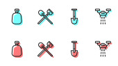 Linia montażowa Kranówka z wodą, Kranówka z wodą, Klucz regulowany do rur oraz ikona rury i zaworu. Wektor.