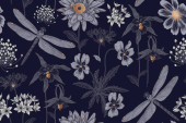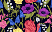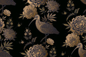 Zdjęcie "Tropikalny wzór kwiatowy bez szwu. Jasne tropikalne ptaki, kwiaty, owoce, złote liście na czarnym tle. Egzotyczna natura. Ilustracja wektora. Klasyka. Luksusowy letni design dla hawajskich koszul." może być wykorzystywane do celów osobistych i komercyjnych zgodnie z warunkami zakupionej licencji Royalty-free. Obraz jest dostępny do pobrania w jakości wysokiej rozdzielczości do 5760x3840.