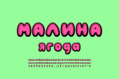 Słodki sok 3d alfabetu italic czcionek. Kreskówkowy krój, trójwymiarowy styl retro. Duże i małe litery, cyfry, symbole. Ilustracja wektora