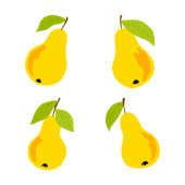 Zdjęcie "Gruszki z liśćmi pod różnymi kątami. Zestaw kolorowych ikon. Ilustracja wektora." może być wykorzystywane do celów osobistych i komercyjnych zgodnie z warunkami zakupionej licencji Royalty-free. Obraz jest dostępny do pobrania w jakości wysokiej rozdzielczości do 5760x3840.