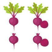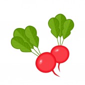 Radish z liśćmi. Wektor płaska ilustracja. Kolor płaska ikona na białym tle. Rośliny korzeniowe, warzywa.