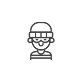 Ikona złodzieja wektora prawa i sprawiedliwości. Szczupła ilustracja złodzieja edytowalnego udaru. Złodziej liniowy znak do stosowania w aplikacjach internetowych i mobilnych, logo, mediach drukowanych.