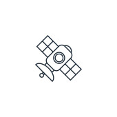 wektor ikony satelitarnej z różnych koncepcji. Cienka ilustracja satelitarnego skoku edytowalnego. satelitarny znak liniowy do stosowania w aplikacjach internetowych i mobilnych, logo, mediach drukowanych.