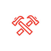 wektor ikony młotka od koncepcji dzień pracy. Cienka ilustracja młotka edytowalnego skoku. Hammer liniowy znak do stosowania w aplikacjach internetowych i mobilnych, logo, nośniki druku.
