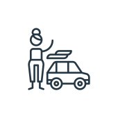 wektor ikony ekosamochodu z koncepcji linii ekologicznej. Cienka ilustracja eko samochodu edytowalnego udaru. Znak ekologiczny do stosowania w aplikacjach internetowych i mobilnych, logo, mediach drukowanych.
