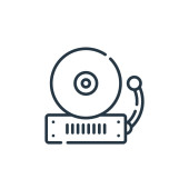 wektor ikony dysków z koncepcji komunikacji i mediów. Cienka linia ilustracji skok edytowalny dysku. napis liniowy do stosowania w aplikacjach internetowych i mobilnych, logo, mediach drukowanych.
