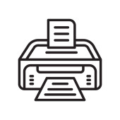 wektor ikony drukarki z koncepcji drukarki i faksu. Cienka ilustracja druku edytowalnego skoku. Znak liniowy drukarki do stosowania w aplikacjach internetowych i mobilnych, logo, mediach drukowanych.