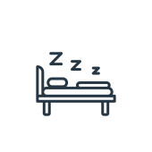 wektor śpiącej ikony z koncepcji zdrowia. Cienka ilustracja śpiącego udaru edytowalnego. Sypialnia liniowa do stosowania w aplikacjach internetowych i mobilnych, logo, mediach drukowanych.