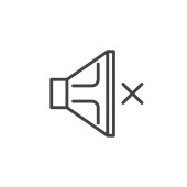 wyciszony wektor ikony z różnych pojęć. Cienka ilustracja niemego, edytowalnego udaru. wyciszyć liniowy znak do stosowania w aplikacjach internetowych i mobilnych, logo, mediach drukowanych.