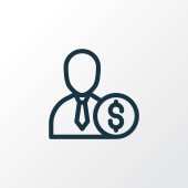 wektor ikony maklera z pieniędzy biznesu i koncepcji komunikacji. Cienka ilustracja maklera edytowalnego udaru. liniowy znak maklerski do stosowania w aplikacjach internetowych i mobilnych, logo, mediach drukowanych.