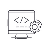 Zdjęcie "kodowanie wektora ikony z seo i koncepcji strony internetowej. Cienka ilustracja kodowania skok edytowalny. kodowanie liniowego znaku do stosowania w aplikacjach internetowych i mobilnych, logo, mediach drukowanych." może być wykorzystywane do celów osobistych i komercyjnych zgodnie z warunkami zakupionej licencji Royalty-free. Obraz jest dostępny do pobrania w jakości wysokiej rozdzielczości do 5760x3840.