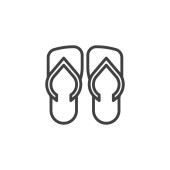 wektor ikony pantofelka z koncepcji podstawowych elementów hotelu. Cienka ilustracja pantofelka edytowalnego udaru. znak liniowy pantofelka do stosowania w aplikacjach internetowych i mobilnych, logo, mediach drukowanych.