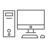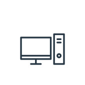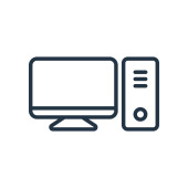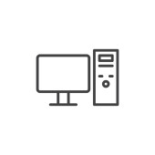 wektor ikony komputera z koncepcji komunikacji. Cienka ilustracja komputerowego skoku edytowalnego. komputerowy znak liniowy do stosowania w aplikacjach internetowych i mobilnych, logo, mediach drukowanych.