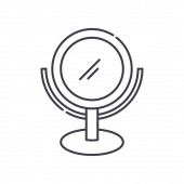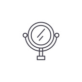 wektor ikony lustrzanej z koncepcji salonu piękności. Cienka ilustracja lustrzanego skoku edytowalnego. znak liniowy lustra do stosowania w aplikacjach internetowych i mobilnych, logo, mediach drukowanych.