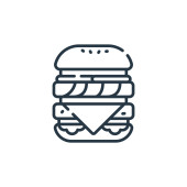 wektor ikony hamburgera z koncepcji piekarni. Cienka ilustracja burgera edytowalny udar. znak liniowy burgera do stosowania w aplikacjach internetowych i mobilnych, logo, mediach drukowanych.