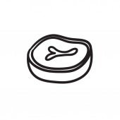 Wektor ikony steka z koncepcji ręcznie rysowane jedzenie. Cienka ilustracja steku edytowalnego udaru. Liniowy napis stekowy do stosowania w aplikacjach internetowych i mobilnych, logo, mediach drukowanych.