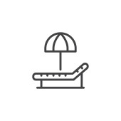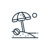 wektor ikony plaży od wiosennej koncepcji. Cienka ilustracja plażowego skoku edytowalnego. znak liniowy plaży do stosowania w aplikacjach internetowych i mobilnych, logo, mediach drukowanych.
