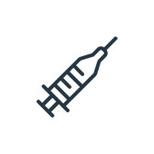 wektor ikony strzykawki od koncepcji zdrowia. Szczupła ilustracja dającego się edytować skoku strzykawki. liniowy znak strzykawki do stosowania w aplikacjach internetowych i mobilnych, logo, mediach drukowanych.