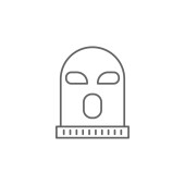 wektor ikony kominiarki od koncepcji przestępczości. Cienka ilustracja kominiarskiego udaru edytowalnego. balaclava liniowy znak do stosowania w aplikacjach internetowych i mobilnych, logo, nośniki druku.