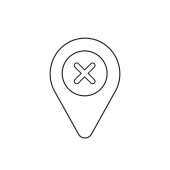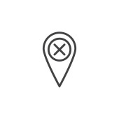 zły wektor ikony od koncepcji lokalizacji. Cienka ilustracja błędnego, edytowalnego udaru. niewłaściwy znak liniowy do stosowania w aplikacjach internetowych i mobilnych, logo, mediach drukowanych.