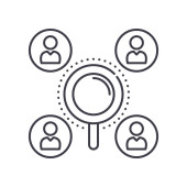 wektor ikony użytkowników z koncepcji marketingu. Cienka ilustracja użytkowników edytowalny udar. liniowy znak użytkownika do stosowania w aplikacjach internetowych i mobilnych, logo, mediach drukowanych.