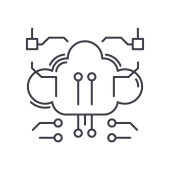 wektor pamięci masowej w chmurze z koncepcji sztucznej inteligencji. Cienka ilustracja chmury pamięci masowej edytowalnego skoku. liniowy znak pamięci masowej w chmurze do stosowania w aplikacjach internetowych i mobilnych, logo, mediach drukowanych.