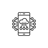 wektor ikony cloud computing z koncepcji cloud computing. Cienka ilustracja chmury obliczeniowej edytowalnego skoku. liniowy znak chmury obliczeniowej do wykorzystania w aplikacjach internetowych i mobilnych, logo, mediach drukowanych.