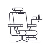 wektor ikony fotela dentysty od koncepcji dentysty. Cienka ilustracja krzesła dentystycznego edytowalnego udaru mózgu. Znak liniowy krzesła dentystycznego do stosowania w aplikacjach internetowych i mobilnych, logo, mediach drukowanych.