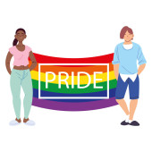 kobiety i mężczyźni kreskówki przed Igbti tęczy wektor projektu