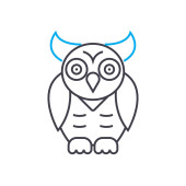 Zdjęcie "Wektor ikony sowy z bajkowej koncepcji. Cienka ilustracja sowy edytowalnego udaru. znak liniowy sowy do stosowania w aplikacjach internetowych i mobilnych, logo, mediach drukowanych." może być wykorzystywane do celów osobistych i komercyjnych zgodnie z warunkami zakupionej licencji Royalty-free. Obraz jest dostępny do pobrania w jakości wysokiej rozdzielczości do 5760x3840.