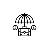 wektor ikony ubezpieczeniowej od koncepcji finansowej. Cienka ilustracja ubezpieczeniowego udaru edytowalnego. ubezpieczeniowy znak liniowy do stosowania w aplikacjach internetowych i mobilnych, logo, mediach drukowanych.