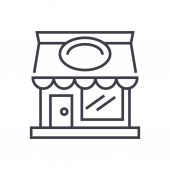 wektor ikony sklepu z koncepcji budynku. Szczupła ilustracja sklepu edytowalnego udaru. sklep liniowy znak do stosowania w aplikacjach internetowych i mobilnych, logo, media drukowane.