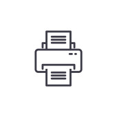 wektor ikony drukarki z koncepcji biurowej. Cienka ilustracja druku edytowalnego skoku. Znak liniowy drukarki do stosowania w aplikacjach internetowych i mobilnych, logo, mediach drukowanych.