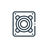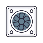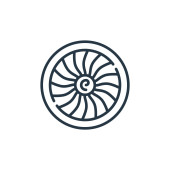 wektor ikony wentylatora od koncepcji komputera. Cienka ilustracja dającego się edytować skoku wentylatora. liniowy znak wentylatora do stosowania w aplikacjach internetowych i mobilnych, logo, mediach drukowanych.