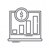 wektor ikony analityki od koncepcji pieniądza. Cienki ilustracja analityka edytowalny udar. liniowy znak analityczny do stosowania w aplikacjach internetowych i mobilnych, logo, mediach drukowanych.