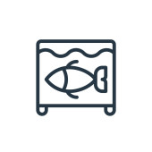 wektor ikony akwarium od koncepcji mebli. Cienka ilustracja akwarium edytowalny udar. ryba liniowy znak do stosowania w aplikacjach internetowych i mobilnych, logo, nośniki druku.