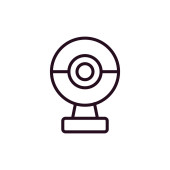 wektor ikony kamery internetowej od koncepcji komunikacji. Cienka linia ilustracja kamery internetowej edytowalny skok. znak liniowy kamery internetowej do stosowania w aplikacjach internetowych i mobilnych, logo, mediach drukowanych.