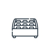 wektor ikony stołu telewizyjnego z różnych pojęć. Cienka ilustracja tabeli telewizyjnej edytowalny udar. Tablica telewizyjna liniowa do stosowania w aplikacjach internetowych i mobilnych, logo, mediach drukowanych.