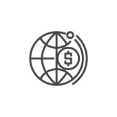 globalny wektor ikony z koncepcji biznesu i pieniędzy. Cienka ilustracja globalnego udaru edytowalnego. globalny znak liniowy do stosowania w aplikacjach internetowych i mobilnych, logo, mediach drukowanych.