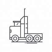 wektor ikony śmieciarki z koncepcją Dnia Matki Ziemi. Cienkie ilustracja śmieciarki edytowalne skoku. liniowy znak śmieciarki do stosowania w aplikacjach internetowych i mobilnych, logo, mediach drukowanych.